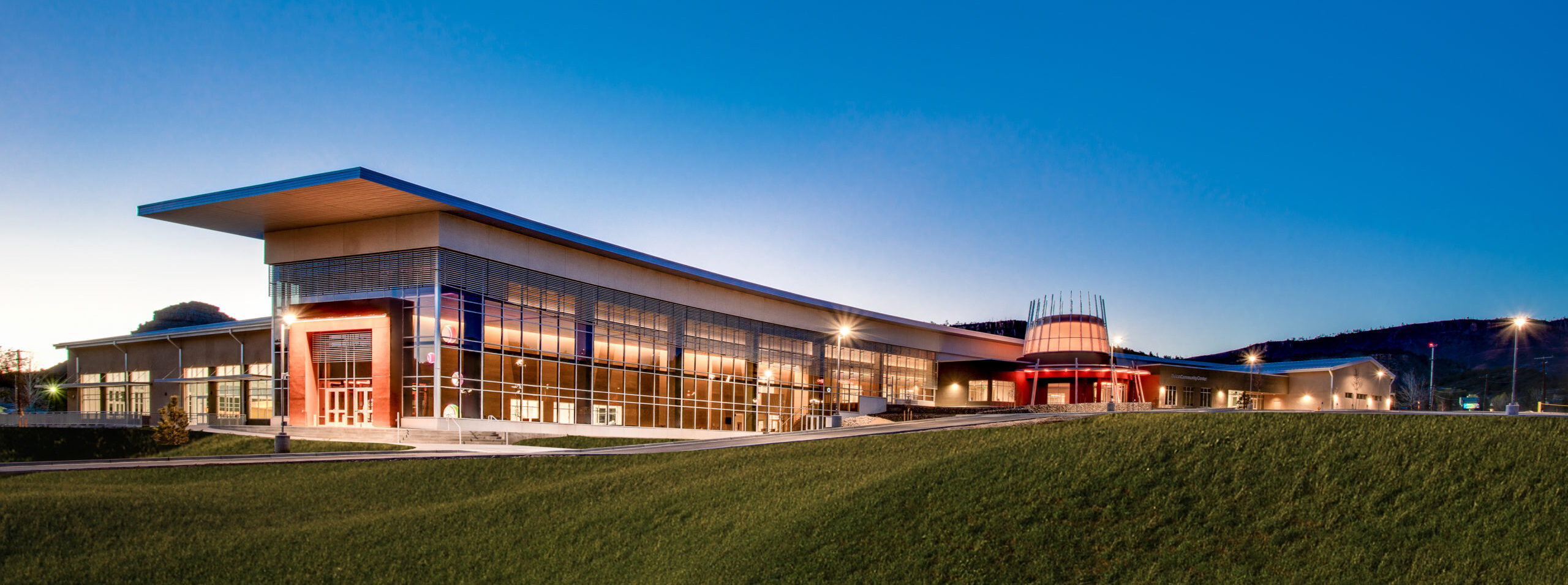 With the client directive to create large beautiful spaces for the community to gather, the design team carefully chose materials and forms to create the house where the Jicarilla Apache community could come together to express their culture. The design of the facility is organized along a central circulation concourse that functionally connects all major facility spaces and creates a multi-use exhibition and gathering space for the community. The new center responds to the cultural context of the Jicarilla Apache Nation by promoting a circular entry element with an east-facing entrance. The scale, forms and design expressions are responsive to the local and cultural vernacular with the use of stone veneer for durability and metal roofs for the high-altitude location. A high solar value glazing system provides abundant daylighting while controlling glare and providing energy efficiency.