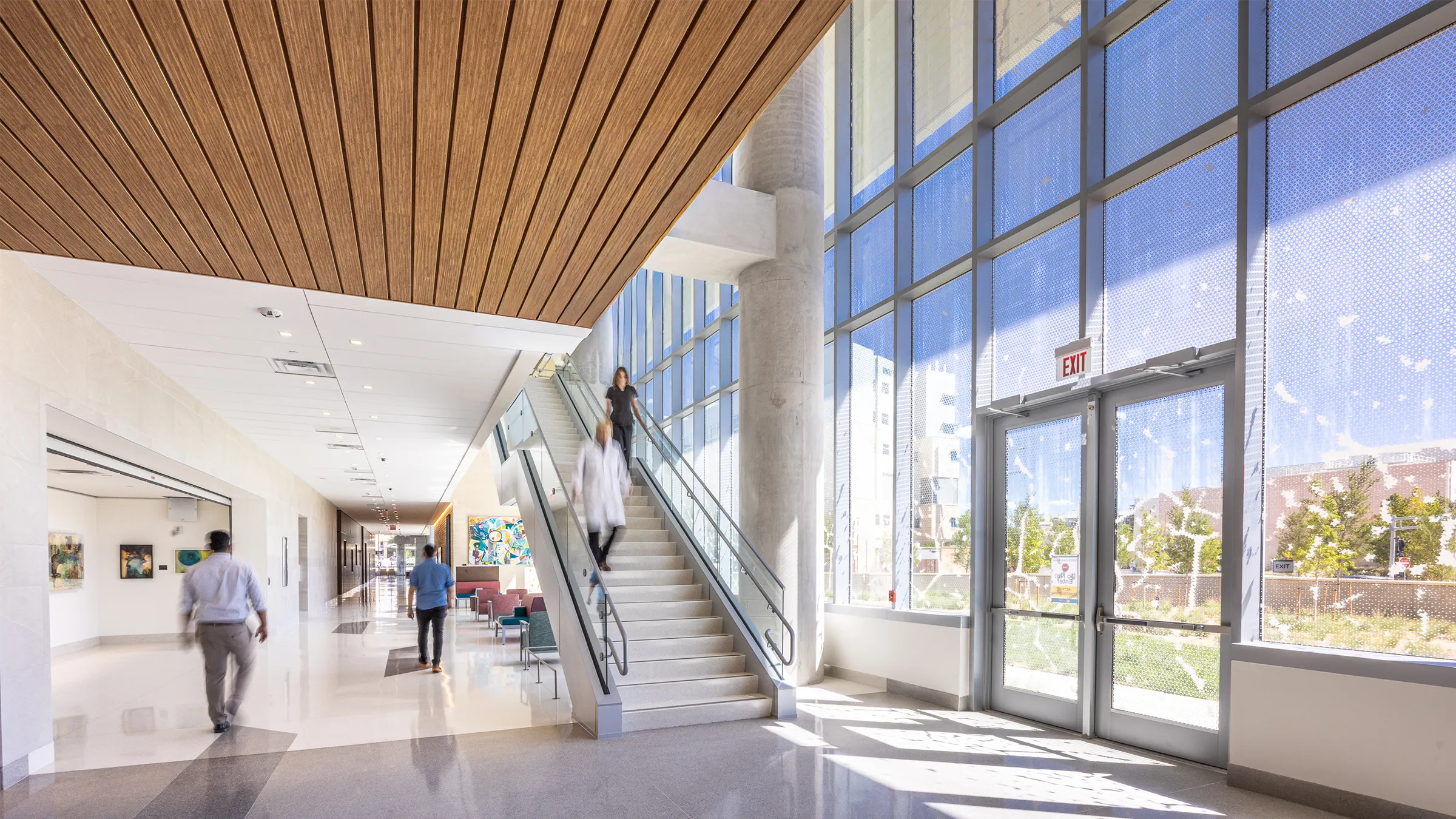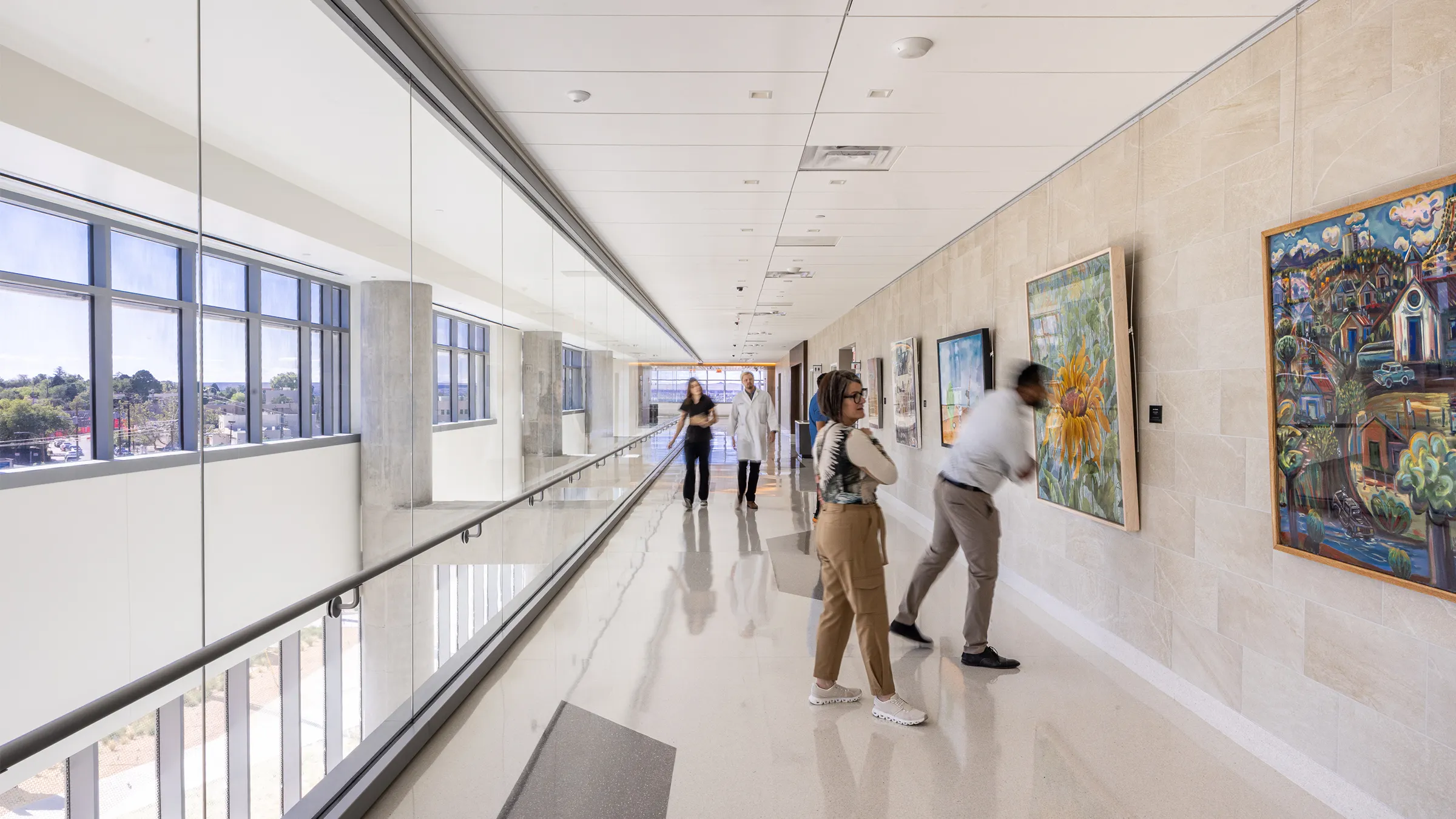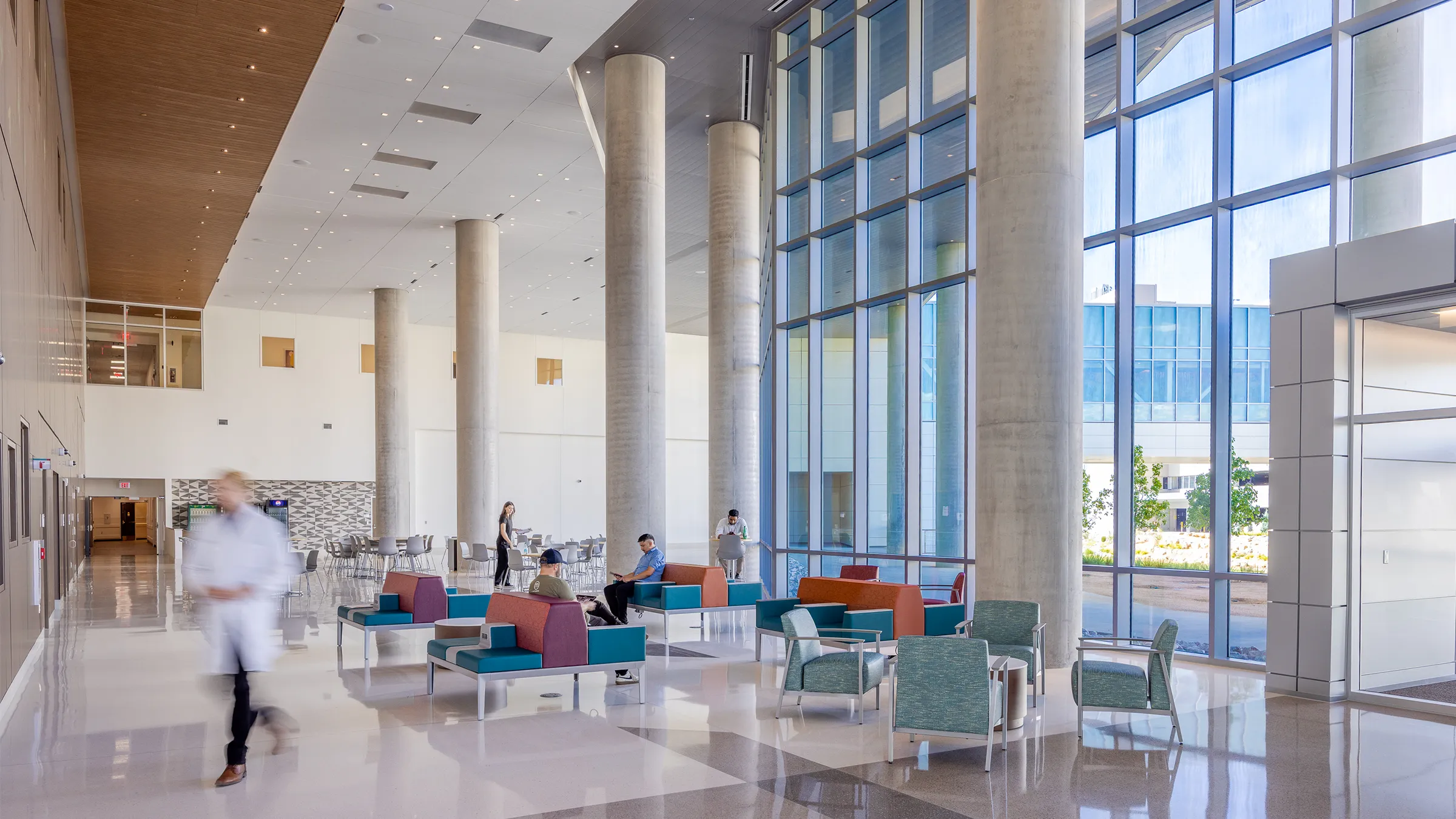 The design of the Critical Care Tower prioritizes patient, family and staff wellbeing through abundant natural light, colorful artwork, views to nature and biophilic design elements. Landscaped courtyards, open corridors and thoughtfully positioned windows connect occupants with the surrounding high desert environment, supporting healing and mental restoration. The design of the new tower also anticipates future growth. Plans are in place to accommodate 96 additional beds on the building’s top two shelled floors.